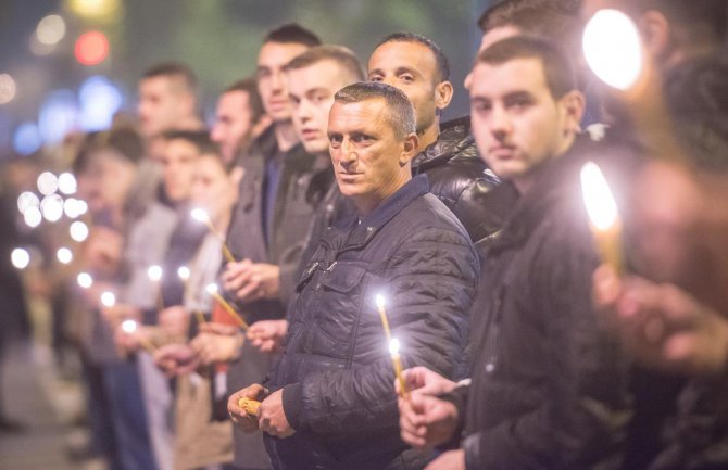 Kolone građana koji su stajali ispred institucija za zapaljenim svijećama predvodili su funkcioneri DF-a Andrija Mandić, Nebojša Medojević, Strahinja Bulajić i Janko Vučinić.