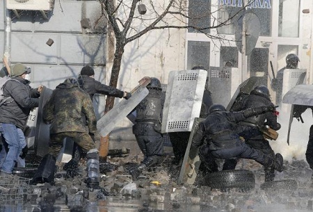 Ispred ukrajinskog parlamenta u Kijevu jutros je došlo do sukoba između policije i nekoliko hiljada demonstranata, koji su pokušali da dođu do zgrade parlamenta kako bi pojačali pritisak na predsjednika Viktora Janukoviča, ali ih je sprečila policija koja je postavila niz policijskih kamiona.